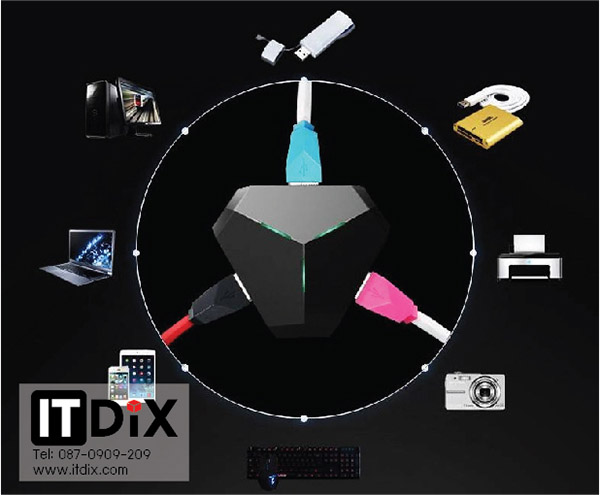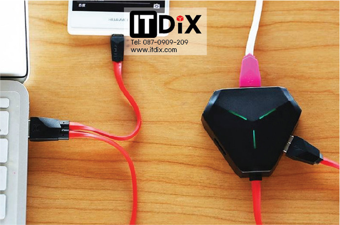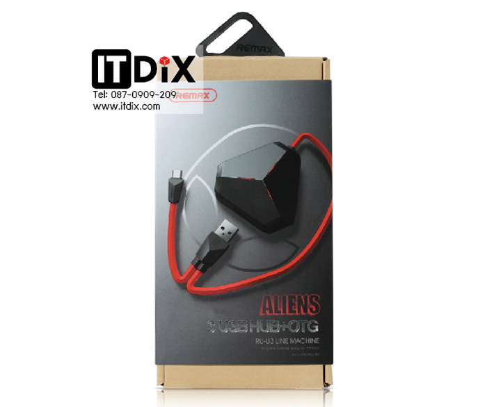 อุปกรณ์ตัวเดียวที่ช่วยให้คุณเชื่อมต่อทุกอุปกรณ์เสริมเข้ากับสมาร์ทโฟนของคุณได้ถึง 3 ชิ้นด้วยกัน ด้วย OTG HUB Remax Aliens RU-U3 รุ่นใหม่ล่าสุดจาก Remax มาพร้อมดีไซน์และชื่อรุ่นสุดเก๋ว่าเอเลี่ยน ตัวอุปกรณ์มีไฟ LED สีสวยงามไว้เตือนสถานะการเชื่อมต่อกับสมาร์ทโฟน พอร์ทของสายทำมุมเป็นเหลี่ยมสวยงามดูเข้ารูปกับดีไซน์ของ HUB สายเชื่อมต่อสีแดงตัดกับตัวเครื่องสีดำและเป็นแบบสายแบนแบบมีสันเพื่อเพิ่มความแข็งแรงทนทานอีกด้วย โดยอุปกรณ์ตัวนี้สามารถใช้งานร่วมกับ เม้าส์ (Mouse) และ คีย์บอร์ด (Keyboard) ได้ ทำให้สมาร์ทโฟนของคุณใช้งานได้ง่ายดายดุจคอมพิวเตอร์ตั้งโต๊ะ สามารถต่อกับจอยเกมส์ (Gamepad) ได้ด้วยหากคุณดูสเปคของจอยแล้วสามารถรองรับ OTG ได้ ความสะดวกสบายที่ให้ได้มากกว่า ที่ช่วยให้คุณง่ายไปกับทุกเรื่องอย่างการเชื่อมต่อแฟลชไดซ์ (Flash Drive) หรือ ฮาร์ดดิสขนาดพกพาเพื่อโอนถ่ายข้อมูลสู่สมาร์ทโฟนอย่างง่ายดายไม่ต้องผ่านคอมพิวเตอร์อีกต่อไป ด้วยความที่เป็นช่องต่อ USB สามารถเชื่อมต่ออุปกรณ์อิเล็กทรอนิคอื่นๆได้มากมาย ไม่ว่าจะเป็น Gadget ที่เป็นพัดลมก็สามารถใช้งานร่วมด้วยได้ และที่สำคัญมี 3 ช่องให้คุณเลือกใช้งานได้พร้อมๆกันอีกด้วย