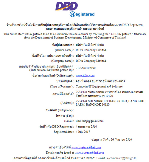 DBD Registered ได้รับการรับรองจาก กรมพัฒนาธุรกิจการค้า ซึ่งท่านจะได้รับสินค้าของแท้ 100% และปลอดภัยทุกการชำระเงิน
